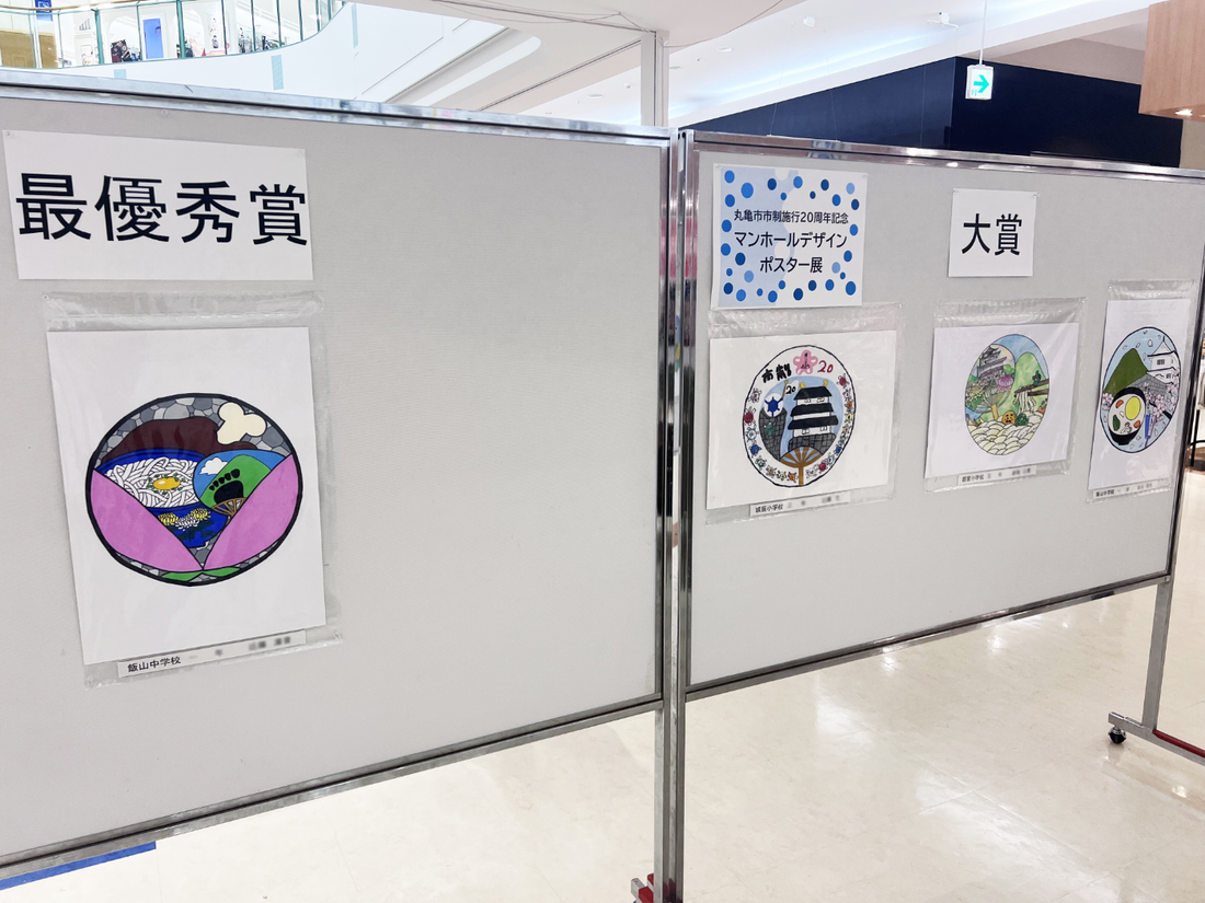 丸亀市市制施行20周年を記念して募集した、市内の小中学生によるマンホールデザインです。