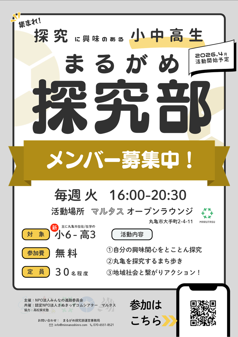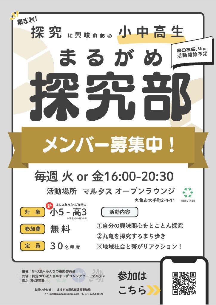 | 対象 | 主に丸亀市在住/在学の小学5年生 ~ 高校3年生 |